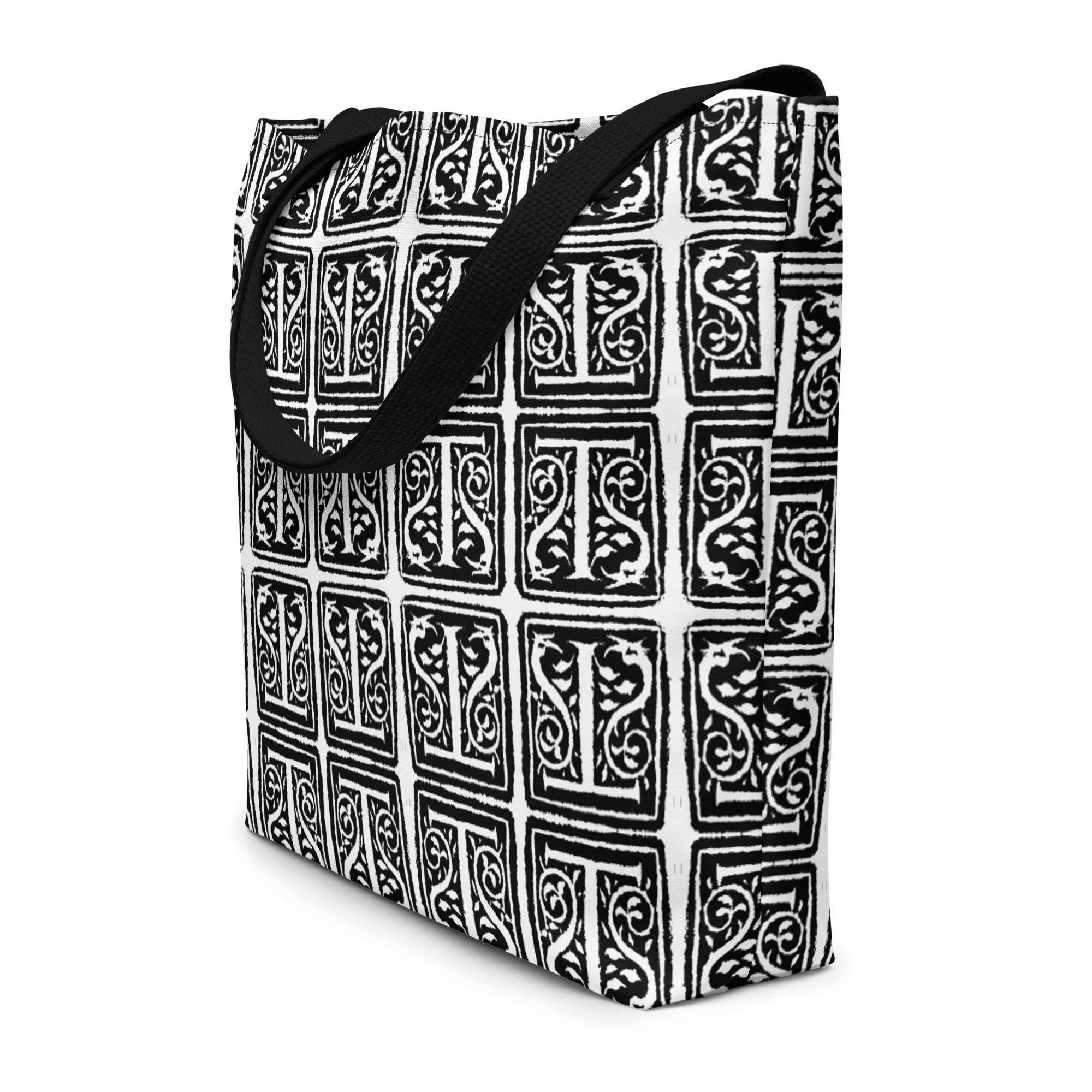 All-Over Print Large Tote Bag – Antique initial T