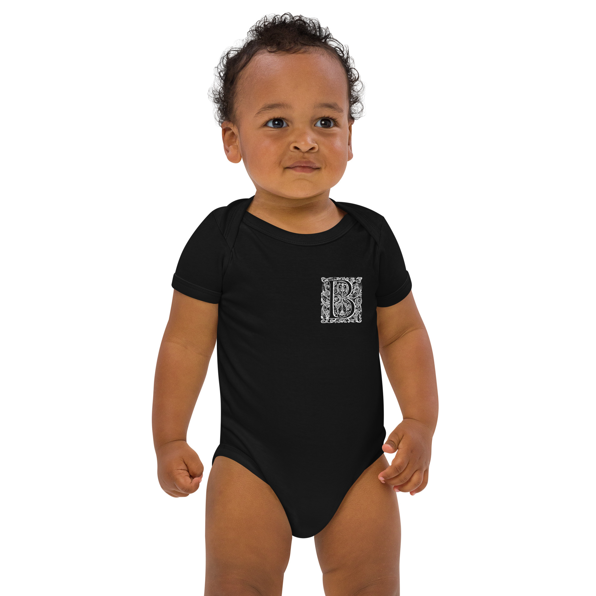 Organic cotton baby bodysuit – Antique Letter B