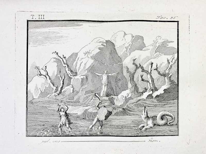 Ancient Rome – Downloadable image file: fresco, Andromeda, Perseus, monster, adventures- Antique 18th century print.