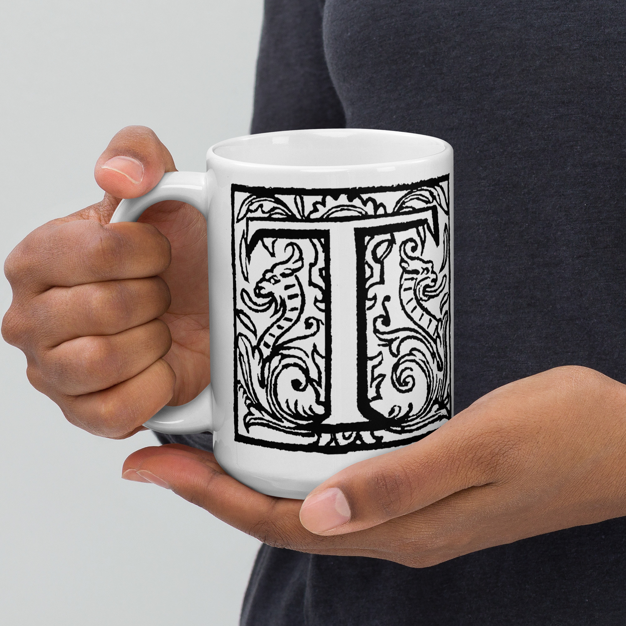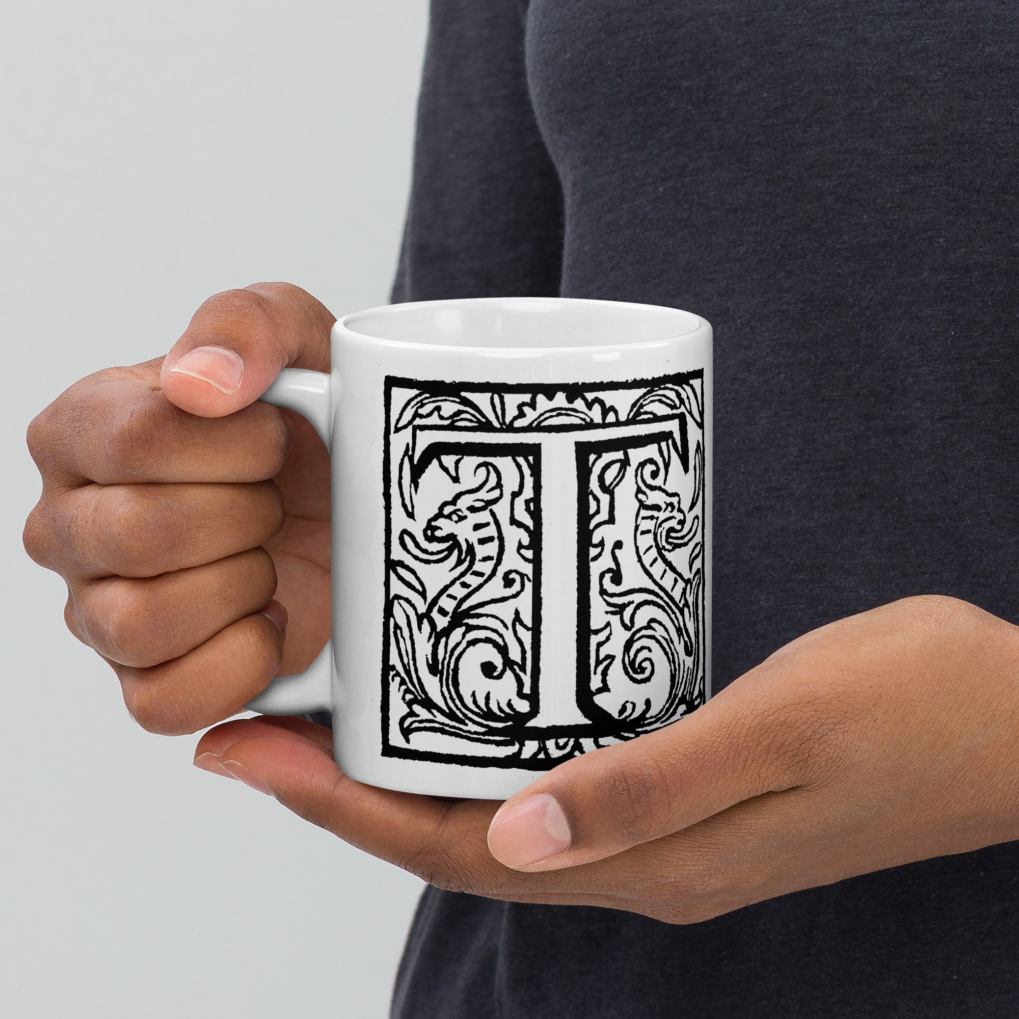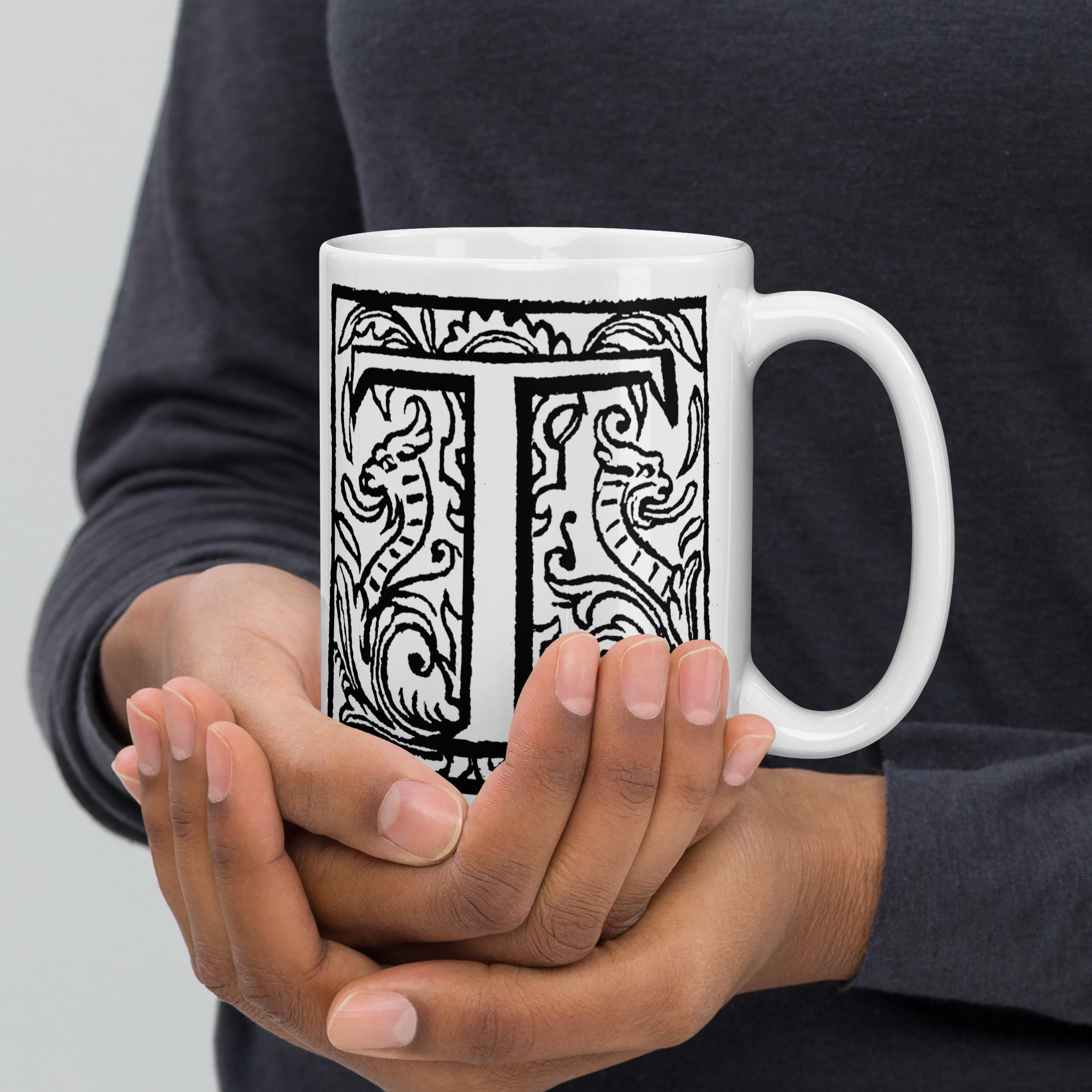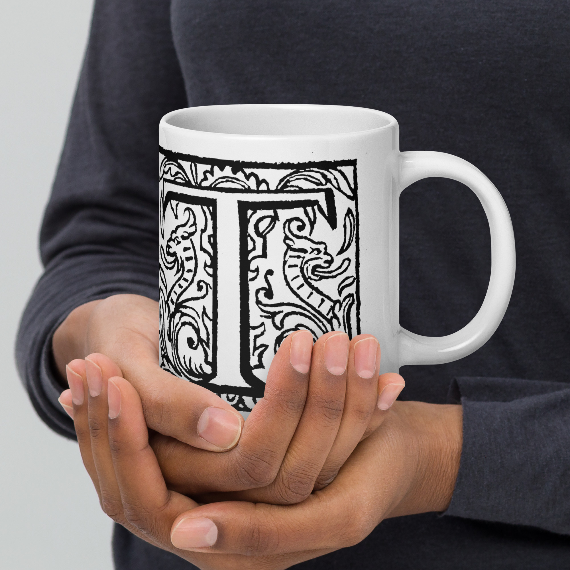 White glossy mug – Antique initial T