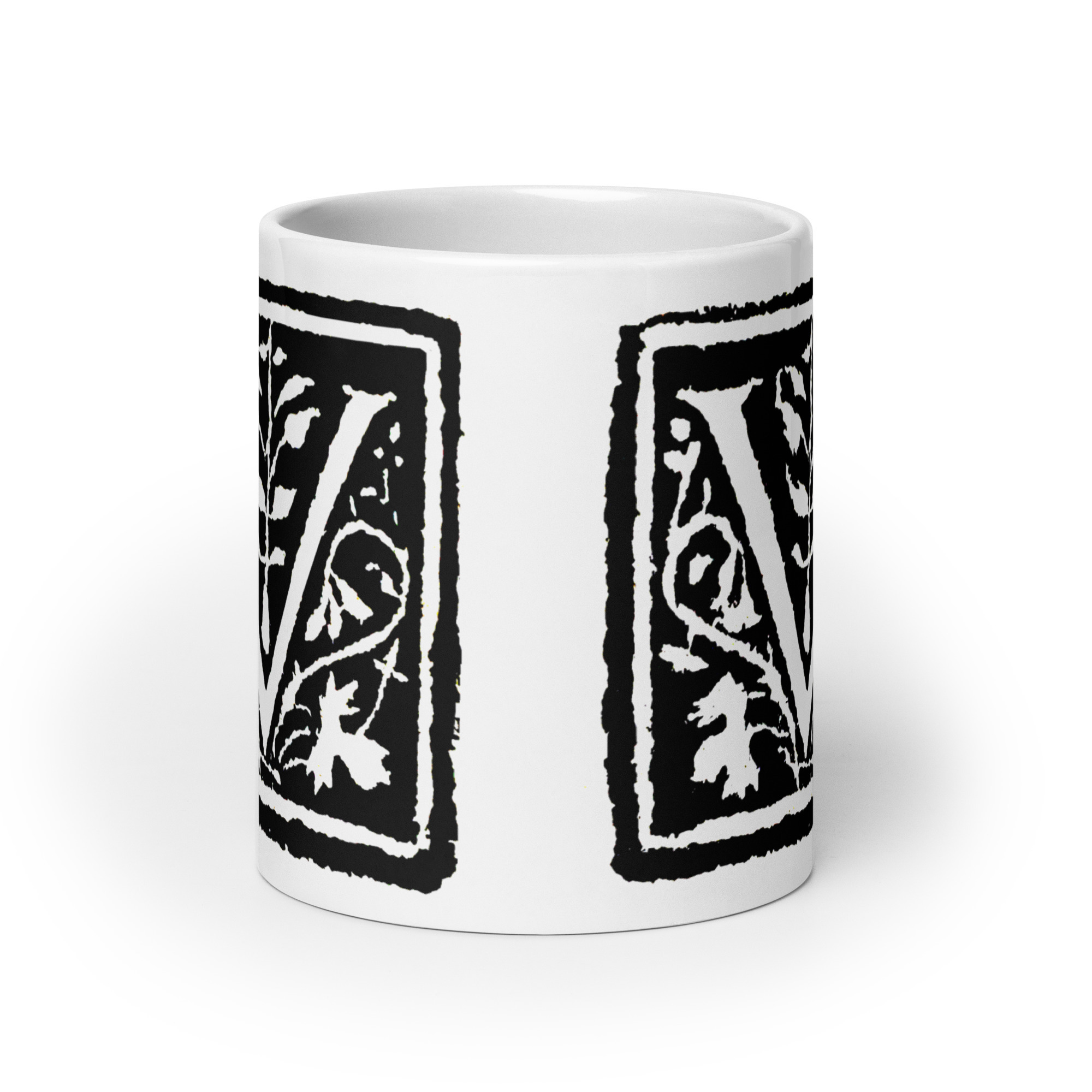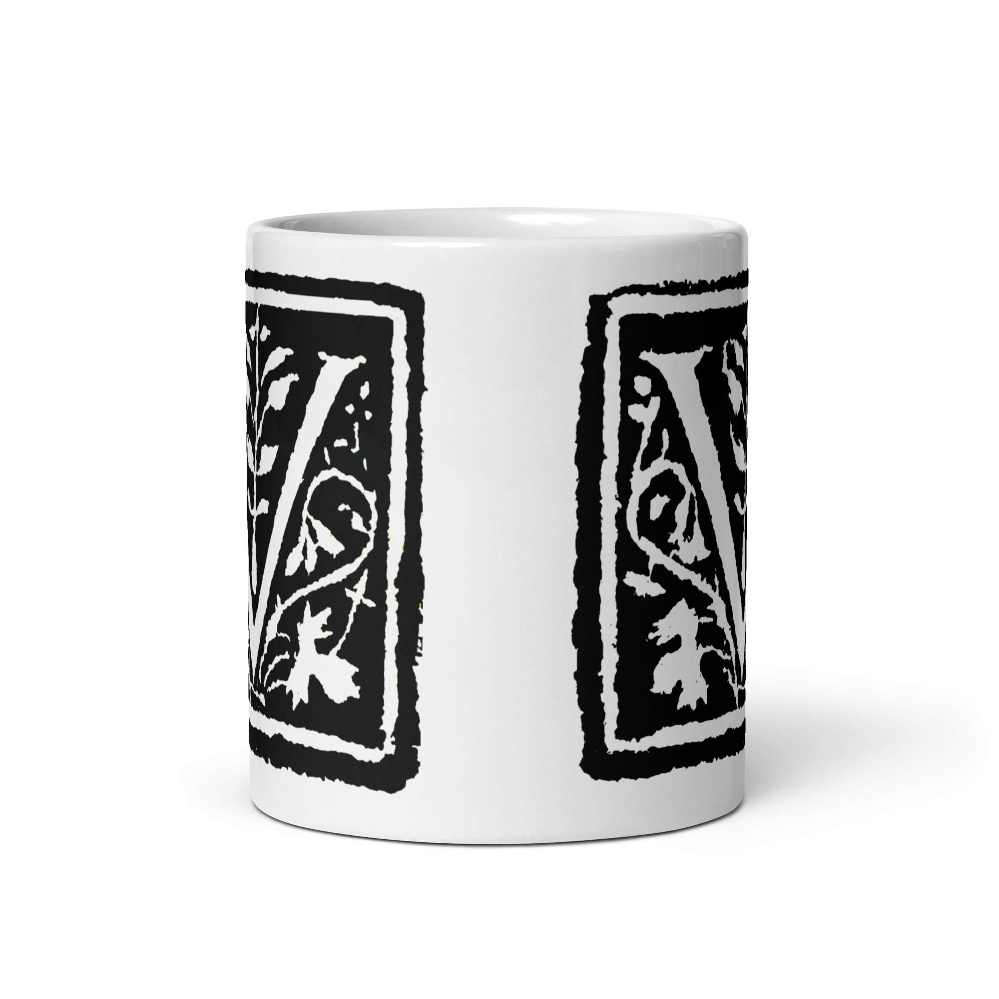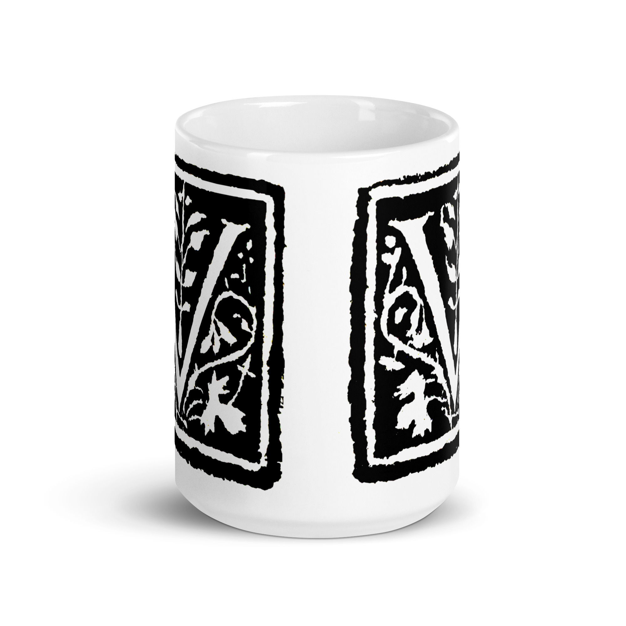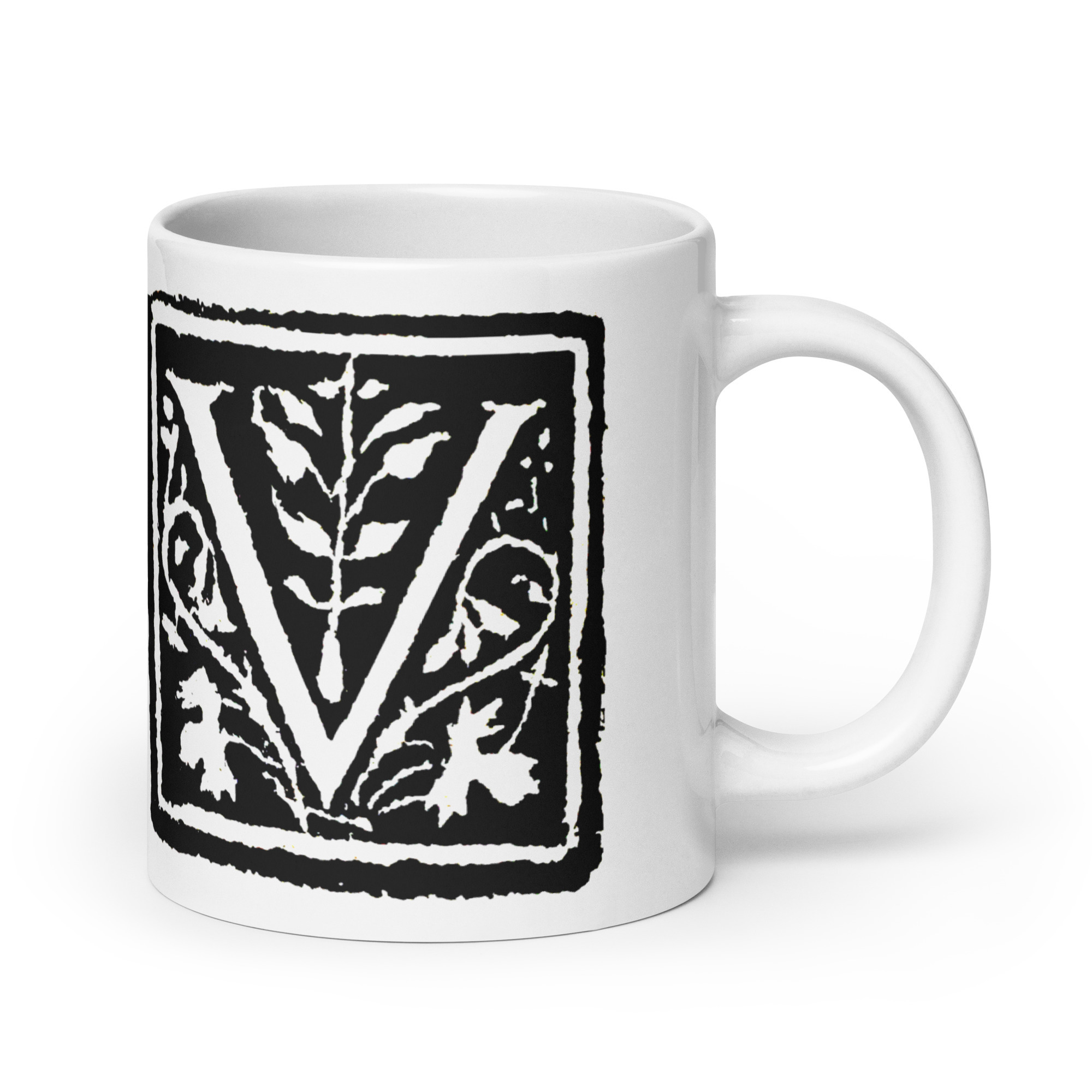 White glossy mug -Antique Letter V
